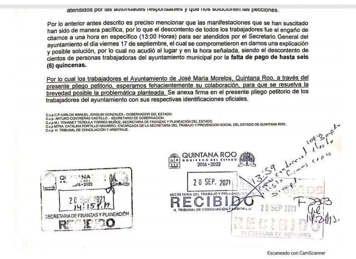 Se supo que una comitiva viajó a la ciudad de Chetumal el día de ayer para hacer la entrega de un pliego petitorio a la encargada de la Secretaria de Finanzas y Planeación en el Estado ( Sefiplan), Yohanet Torres Nuñez.