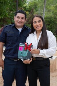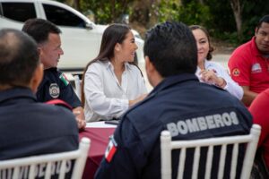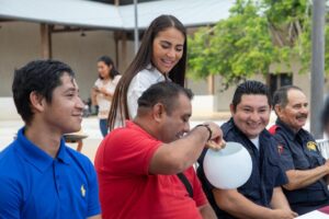 La alcaldesa destacó el esfuerzo y dedicación de las y los elementos del H. Cuerpo de Bomberos de Felipe Carrillo Puerto, quienes ponen en riesgo su vida en la extinción de incendios, rescate de personas y protección de espacios ambientales. Además, mencionó que la adquisición del nuevo carro bomba de alta gama y el equipo necesario para la protección, será una herramienta indispensable para fortalecer su labor en beneficio de la comunidad.