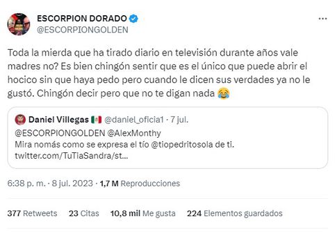 Y añadió “Es bien ching** sentir que es el único que puede abrir el hocico sin que haya pedo, pero cuando le dicen sus verdades ya no le gustó. Ching¨ decir pero que no te digan nada”, escribió por medio de un tuit.