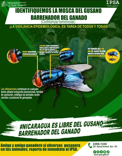 La dependencia mexicana advirtió que este gusano barrenador del ganado es el nombre coloquial de las larvas de la mosca Cochliomyia hominivorax, que depositan sus huevos en las heridas abiertas de los mamíferos de sangre caliente para convertirse en larvas que se alimentan de la masa muscular y generan una infección que puede ocasionar la muerte en animales y humanos.