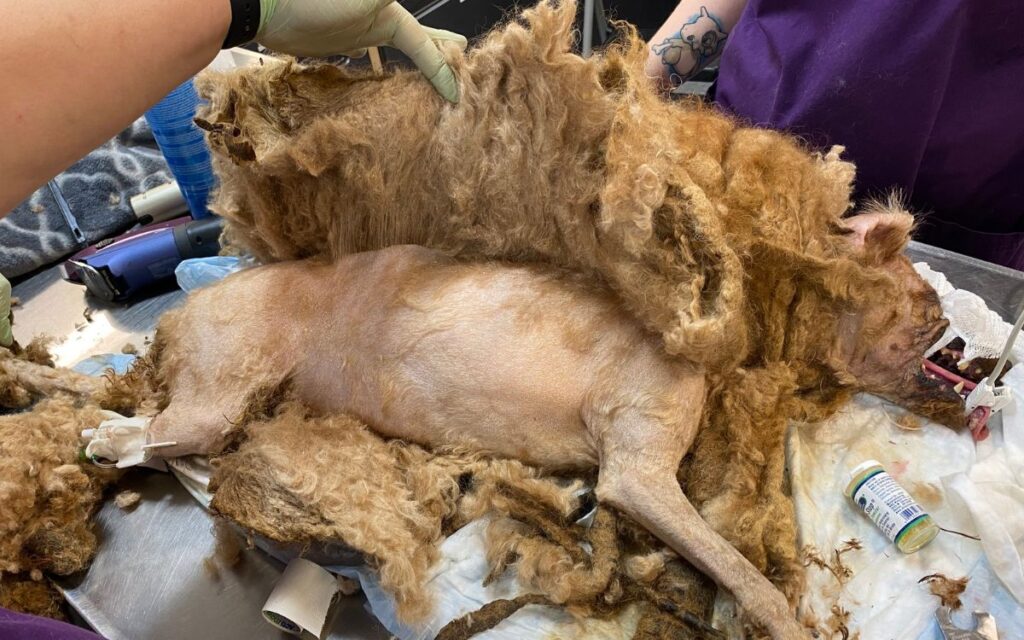 Según compartió SPCA, el perro llamado Pierre tenía un enmarañado de pelo tan denso que le impedía ver o caminar adecuadamente. Además, desprendía un fuerte olor a heces y orina.