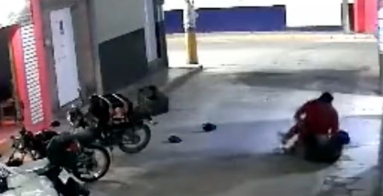 Es en ese momento que el padre del infante se levanta y, sin mediar palabra, se lanza a golpes e insultos contra el desconocido, quien tras el primer golpe cae al suelo. En las imágenes se logra apreciar la golpiza en medio de la calle, pues el padre de familia le propina patadas y puñetazos. Al fondo, el niño solloza y, afligido, dice: “mamá, me dolió mucho, me dolió mucho”. Al mimo tiempo, afuera del local el agresor consigue escapar corriendo, pero semidesnudo pues durante el forcejeo perdió su playera y chaleco.