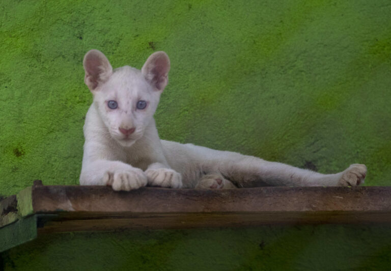 La puma albina Itzae, que significa ‘Regalo de Dios’ en lengua maya, fue presentada este viernes ante el público en el Zoológico Thomas Belt de Nicaragua. Según la revista National Geographic, únicamente hay constancia de cuatro pumas albinos en todo el mundo.