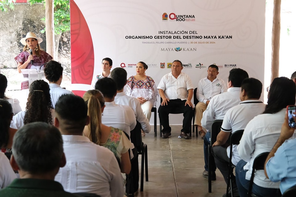 Tihosuco.- La gobernadora Mara Lezama Espinosa tomó protesta e instaló el Organismo Gestor del destino Maya Ka´an, marca turística que se creó hace una década y que se encuentra en los municipios de Felipe Carrillo Puerto y José María Morelos, lo que representa un paso adelante en la conservación y gestión del patrimonio natural y cultural de Quintana Roo.