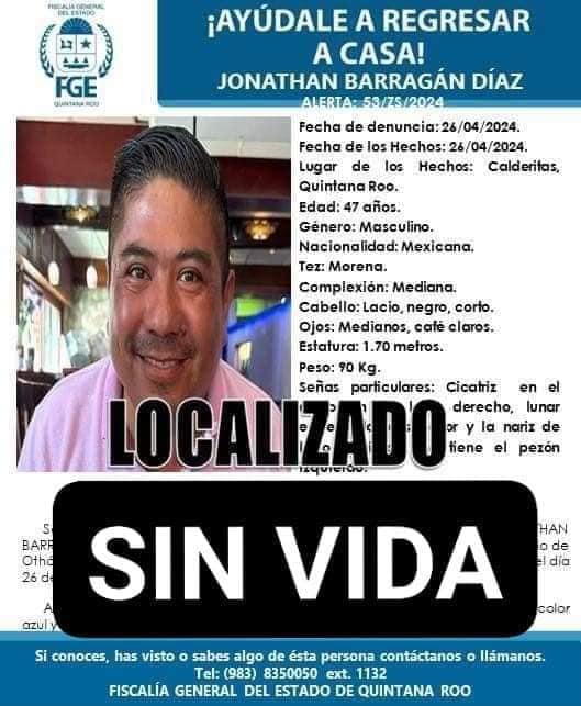 La Fiscalía General del Estado de Quintana Roo emitió la alerta 133/ZS/2024 tras la desaparición del joven, ocurrida el 8 de agosto de 2024.
